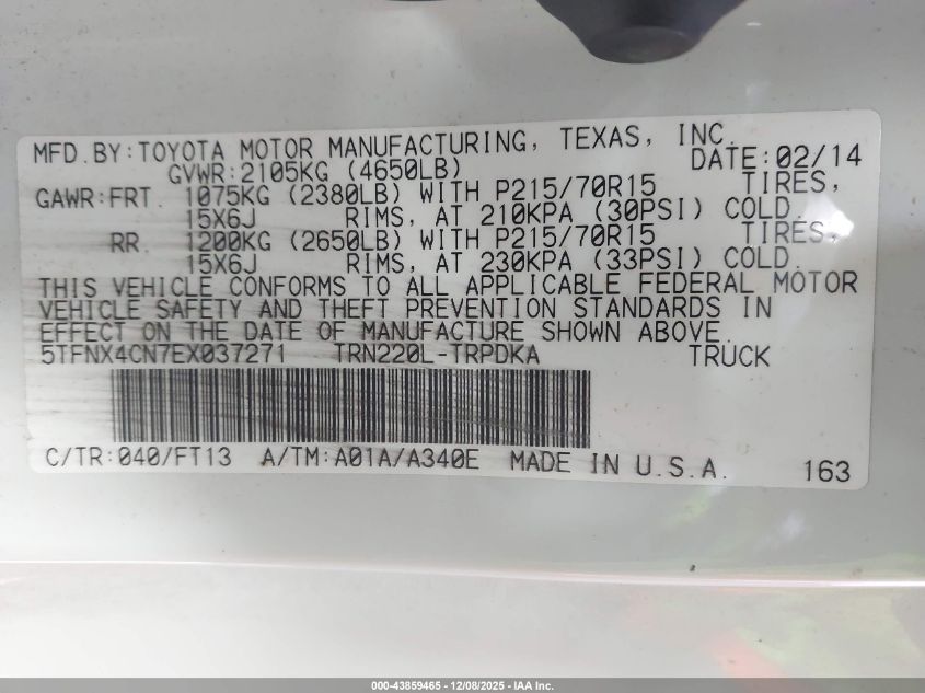 2014 TOYOTA TACOMA - 5TFNX4CN7EX037271, колір - Білий, 2.7, Бензин, із США