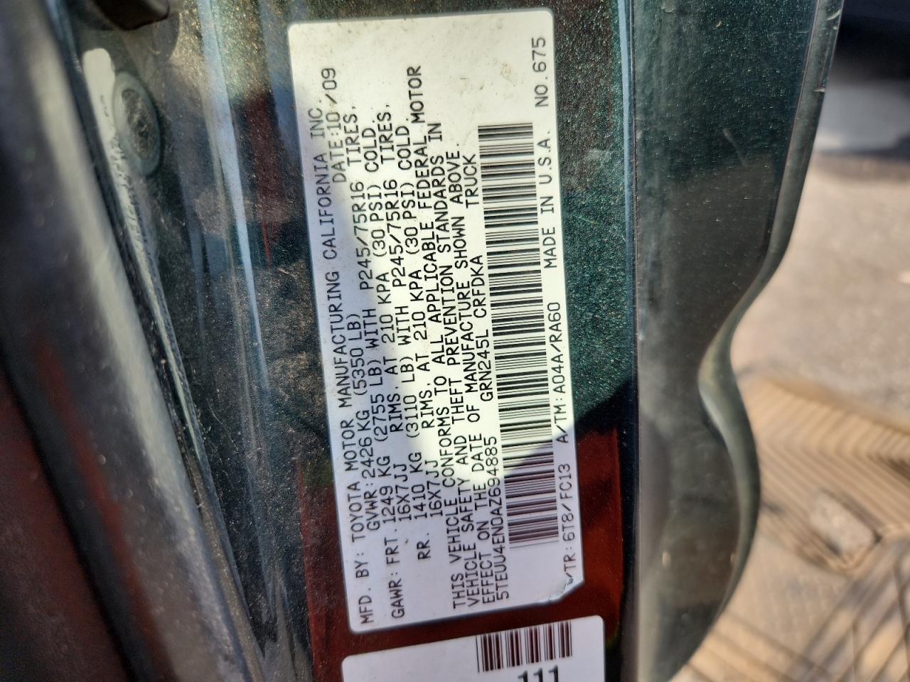 2010 TOYOTA TACOMA - 5TEUU4EN0AZ694885, колір - Зелений, 4.0, Бензин, 4x4 з заднім приводом із США