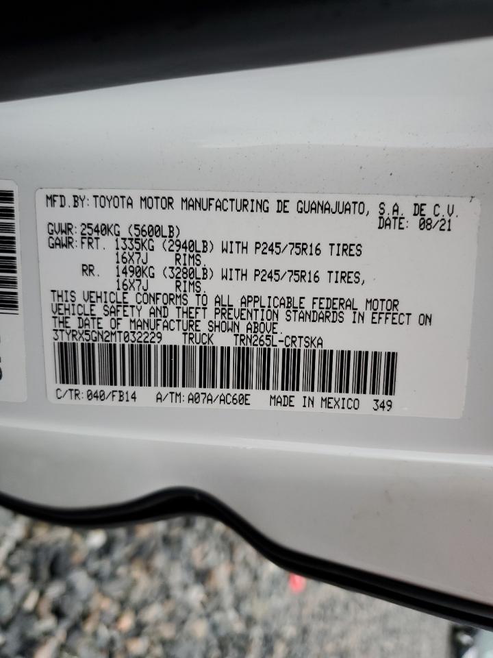 2021 TOYOTA TACOMA - 3TYRX5GN2MT032229, колір - Білий, 2.7, Бензин, Задній привід із США