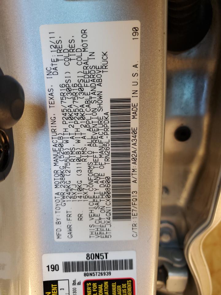 2012 TOYOTA TACOMA - 5TFJX4GN1CX008600, колір - Срібний, 2.7, Бензин, Задній привід із США