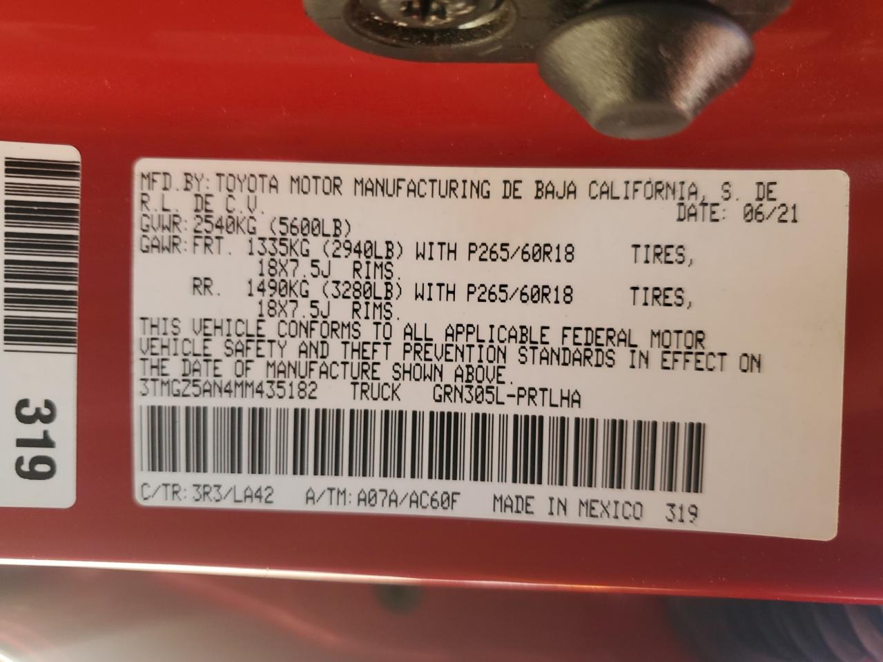 2021 TOYOTA TACOMA - 3TMGZ5AN4MM435182, колір - Червоний, 3.5, Бензин, 4x4 з заднім приводом із США