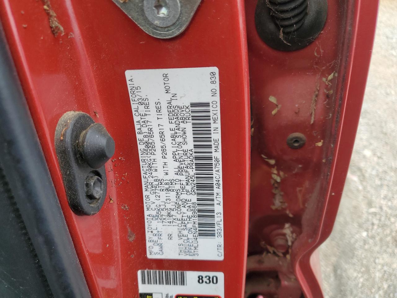 2015 TOYOTA TACOMA - 3TMLU4EN4FM189688, колір - Бургундія, 4.0, Бензин, 4x4 з заднім приводом із США