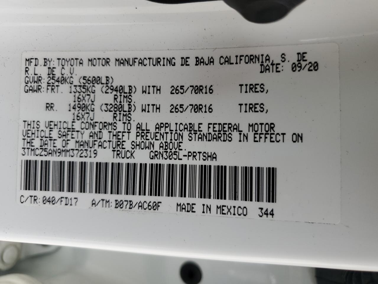 Колір БілийЦиліндри 6Привід 4x4 з заднім приводомVIN 3TMCZ5AN9MM372319Стан НевідомоУшкодження Передня або задня