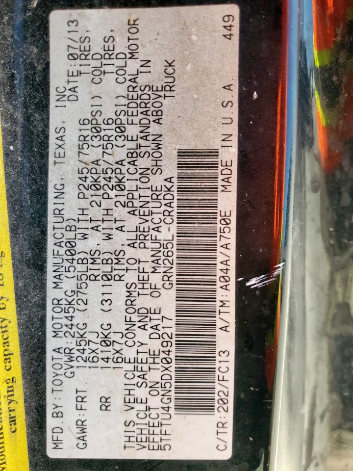 2013 TOYOTA TACOMA - 5TFTU4GN5DX049217, колір - Чорний, 4.0, Бензин, Задній привід із США