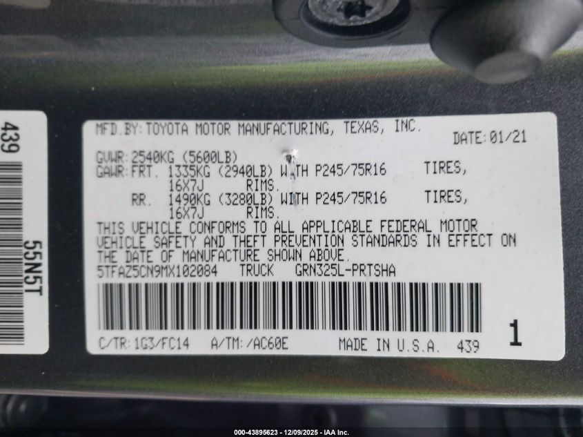 2021 TOYOTA TACOMA - 5TFAZ5CN9MX102084, колір - Сірий, 3.5, Бензин, із США