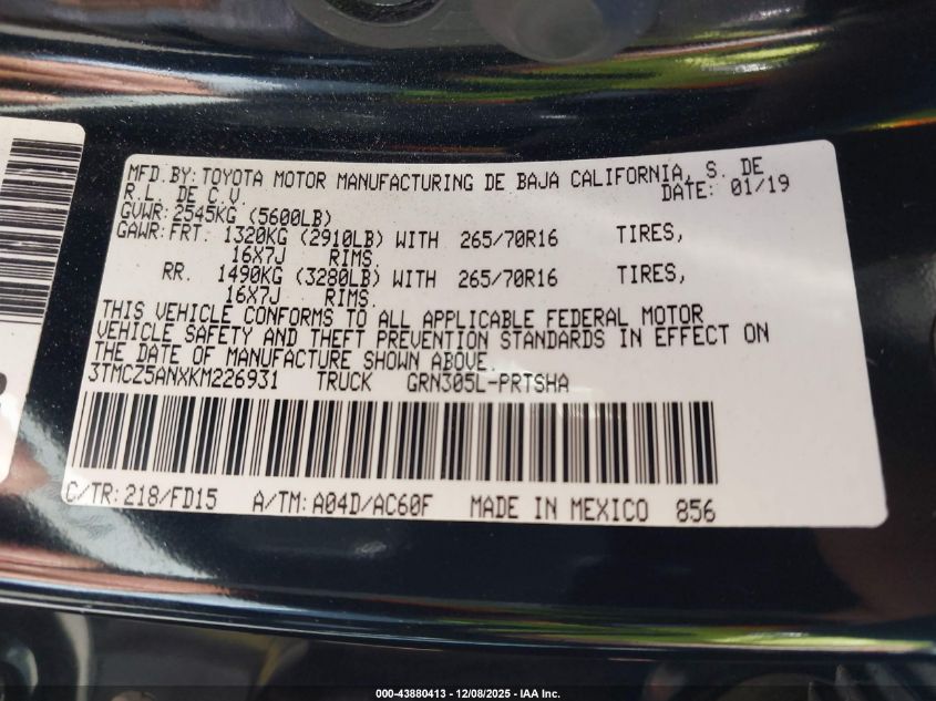 2019 TOYOTA TACOMA - 3TMCZ5ANXKM226931, колір - Чорний, 3.5, Бензин, Повний привід із США