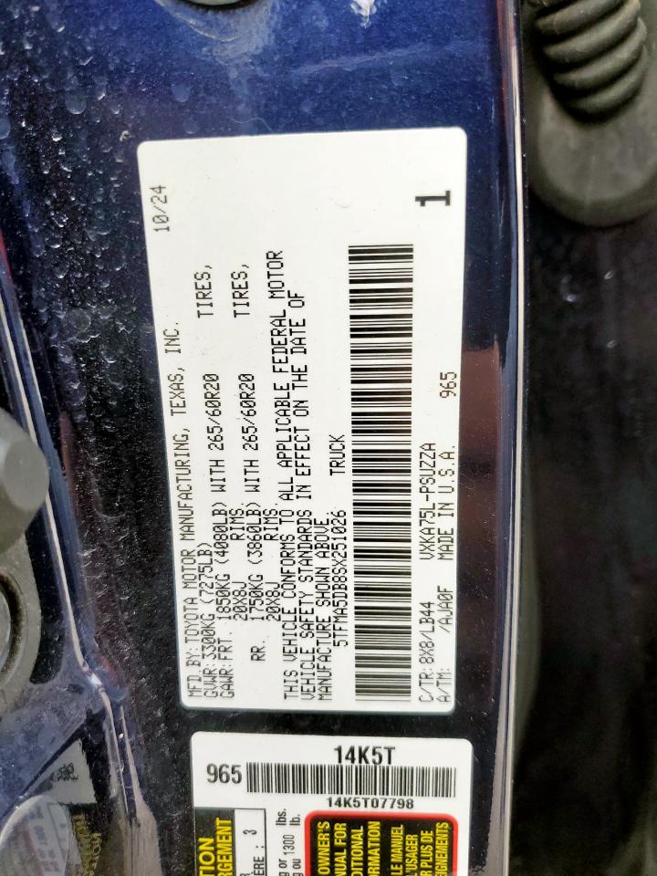 2025 TOYOTA TUNDRA - 5TFMA5DB8SX251026, колір - Синій, 3.4, Бензин, 4x4 з заднім приводом із США