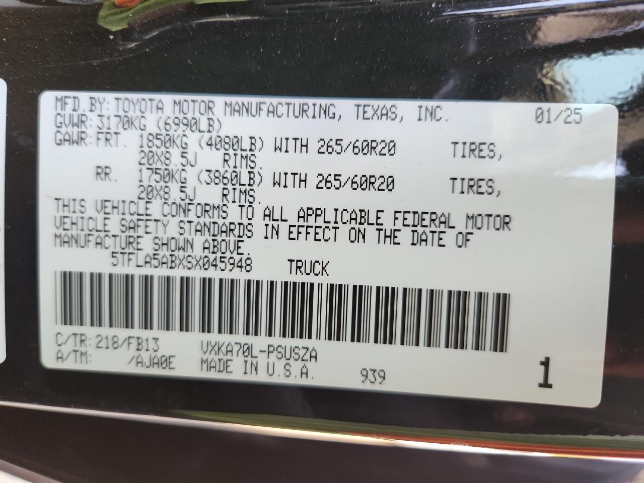 2025 TOYOTA TUNDRA - 5TFLA5ABXSX045948, колір - Чорний, 3.4, Бензин, Задній привід із США