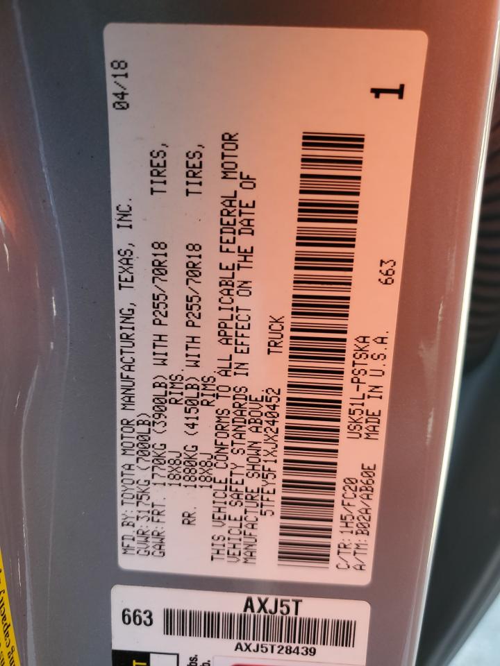 2018 TOYOTA TUNDRA - 5TFEY5F1XJX240452, колір - Срібний, 5.7, Бензин, Задній привід із США