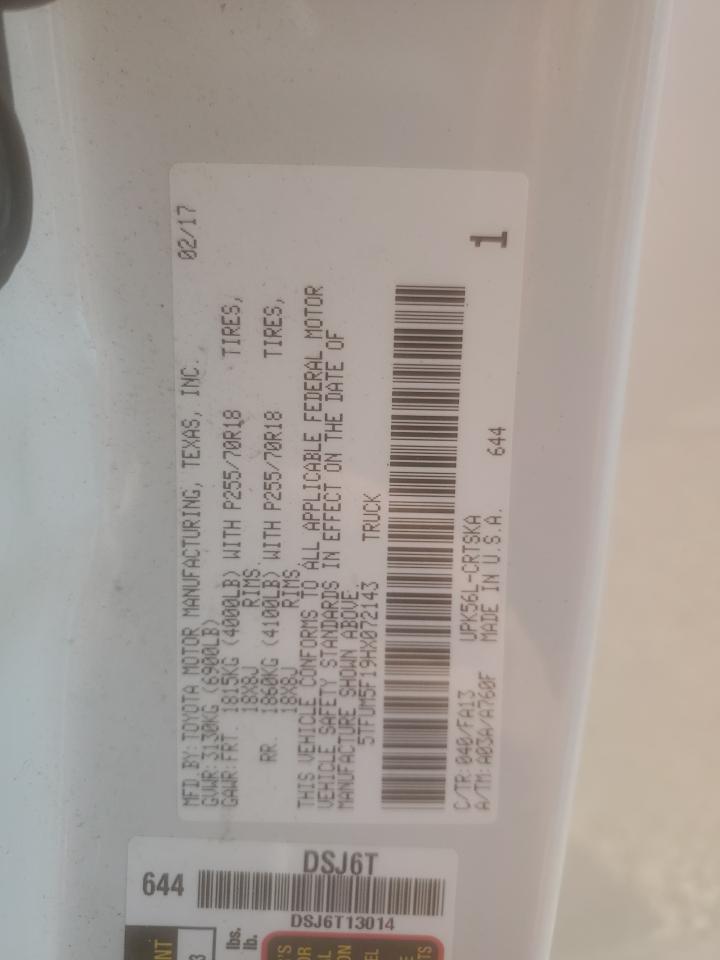 2017 TOYOTA TUNDRA - 5TFUM5F19HX072143, колір - Білий, 4.6, Бензин, 4x4 з заднім приводом із США