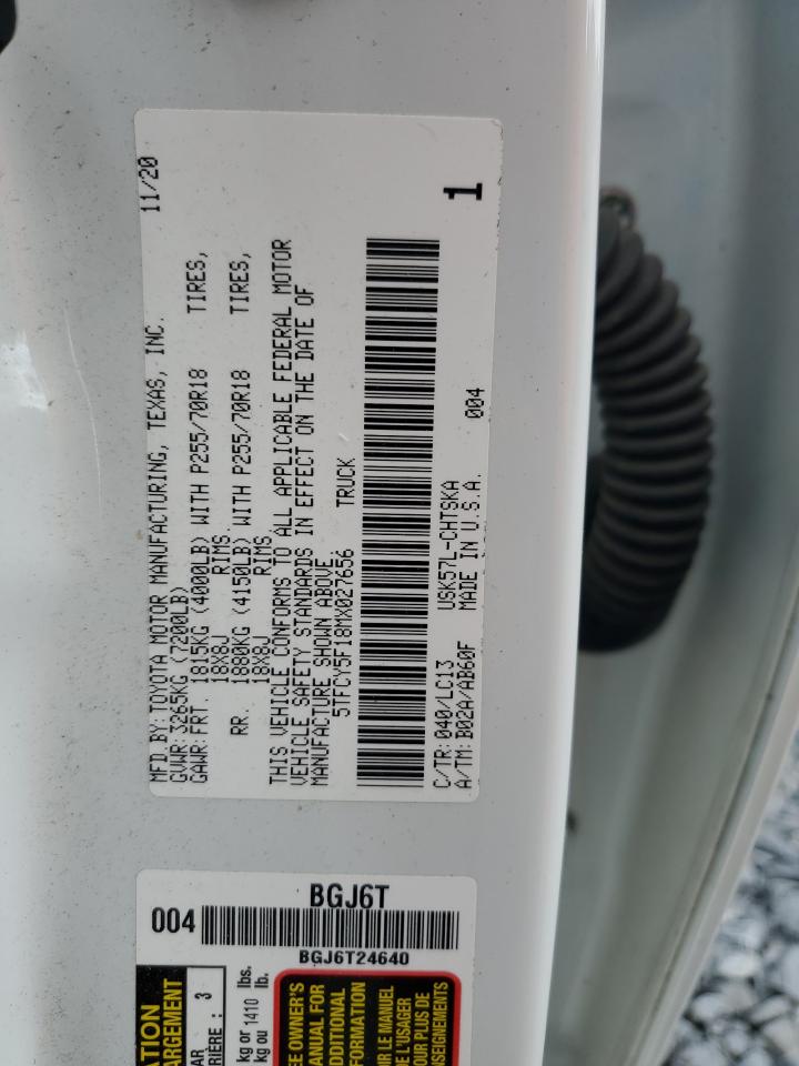 2021 TOYOTA TUNDRA - 5TFCY5F18MX027656, колір - Білий, 5.7, Бензин, 4x4 з заднім приводом із США