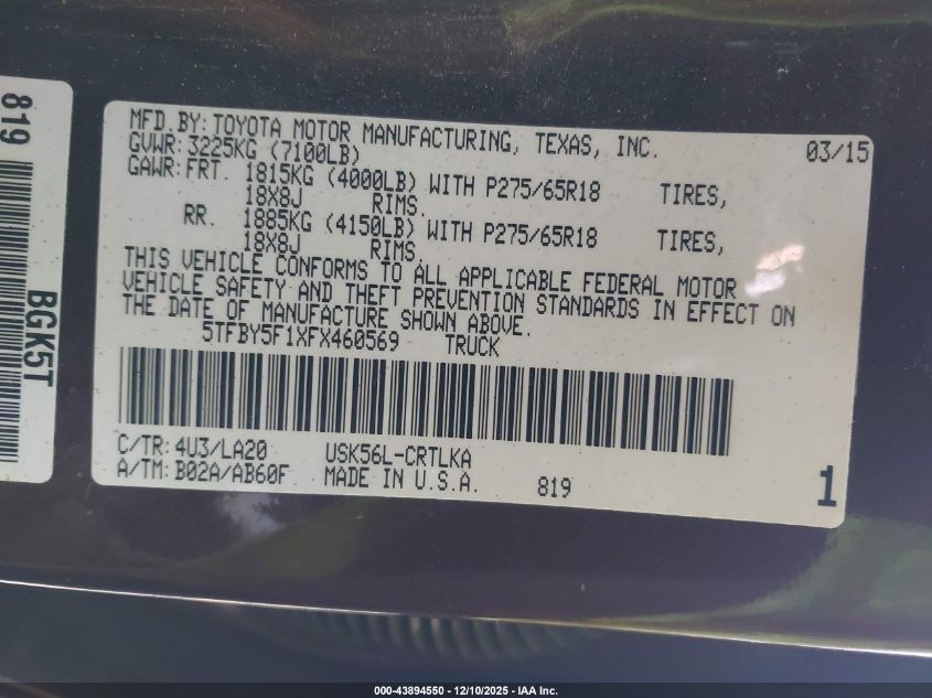 2015 TOYOTA TUNDRA - 5TFBY5F1XFX460569, колір - Коричневий, 5.7, Бензин, Повний привід із США