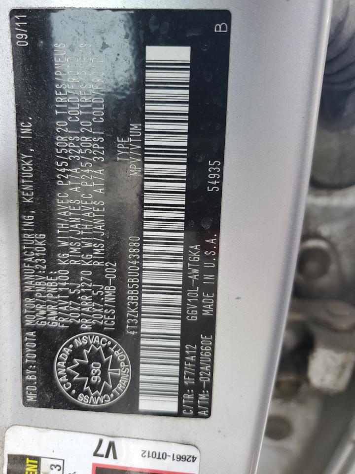 2011 TOYOTA VENZA - 4T3ZK3BB5BU043880, колір - Срібний, 3.5, Бензин, із США