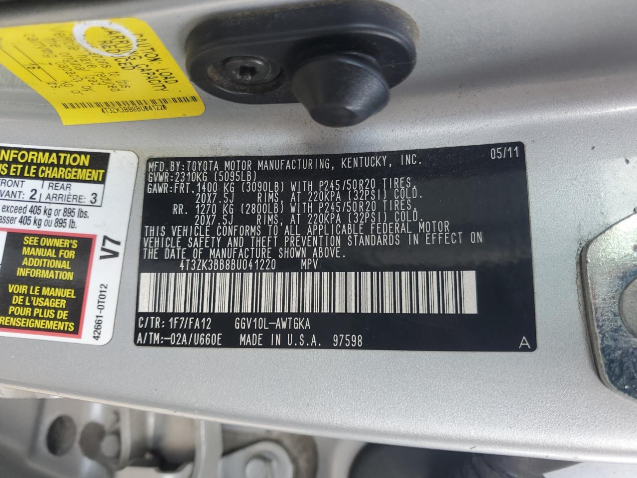 2011 TOYOTA VENZA - 4T3ZK3BB8BU041220, колір - Срібний, 3.5, Бензин, із США