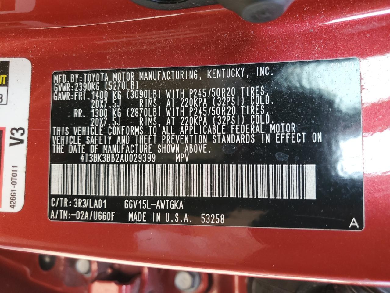 2010 TOYOTA VENZA - 4T3BK3BB2AU029399, колір - Червоний, 3.5, Бензин, Повний привід із США