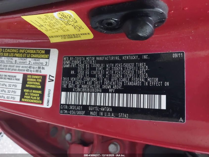 2011 TOYOTA VENZA - 4T3BK3BB0BU060846, колір - Червоний, 3.5, Бензин, Повний привід із США