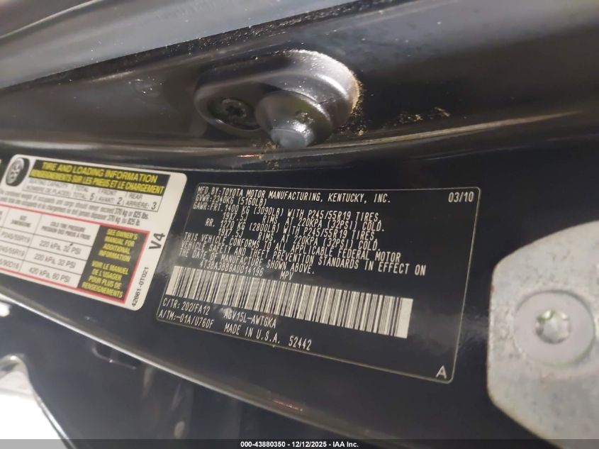 2010 TOYOTA VENZA - 4T3BA3BB8AU014196, колір - Чорний, 2.7, Бензин, Повний привід із США
