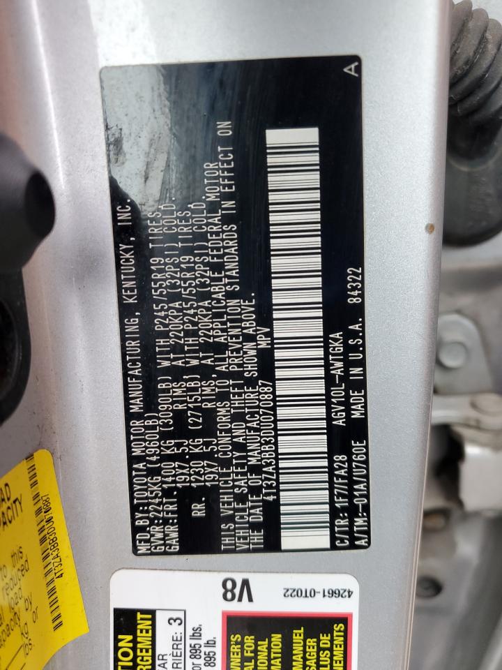2013 TOYOTA VENZA - 4T3ZA3BB3DU070887, колір - Срібний, 2.7, Бензин, із США
