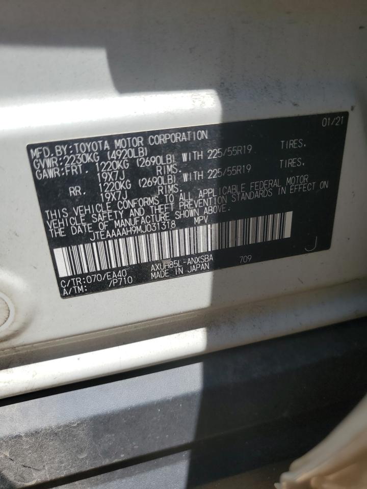 2021 TOYOTA VENZA - JTEAAAAH9MJ031318, колір - Білий, 2.5, Гібрид, Повний привід із США