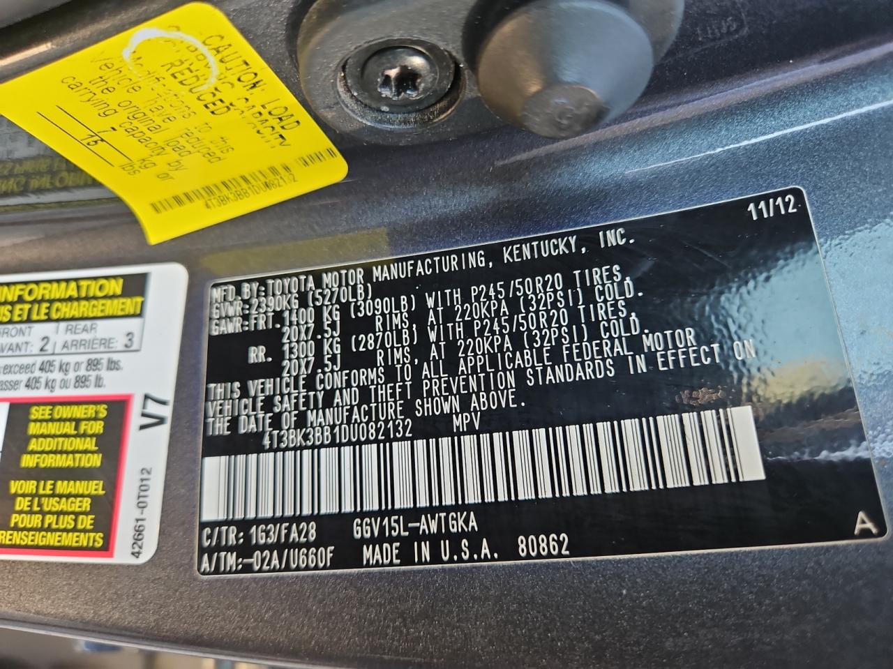 2013 TOYOTA VENZA - 4T3BK3BB1DU082132, колір - Сірий, 3.5, Бензин, Повний привід із США
