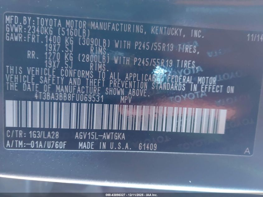 2015 TOYOTA VENZA - 4T3BA3BB8FU069531, колір - Сірий, 2.7, Бензин, Повний привід із США