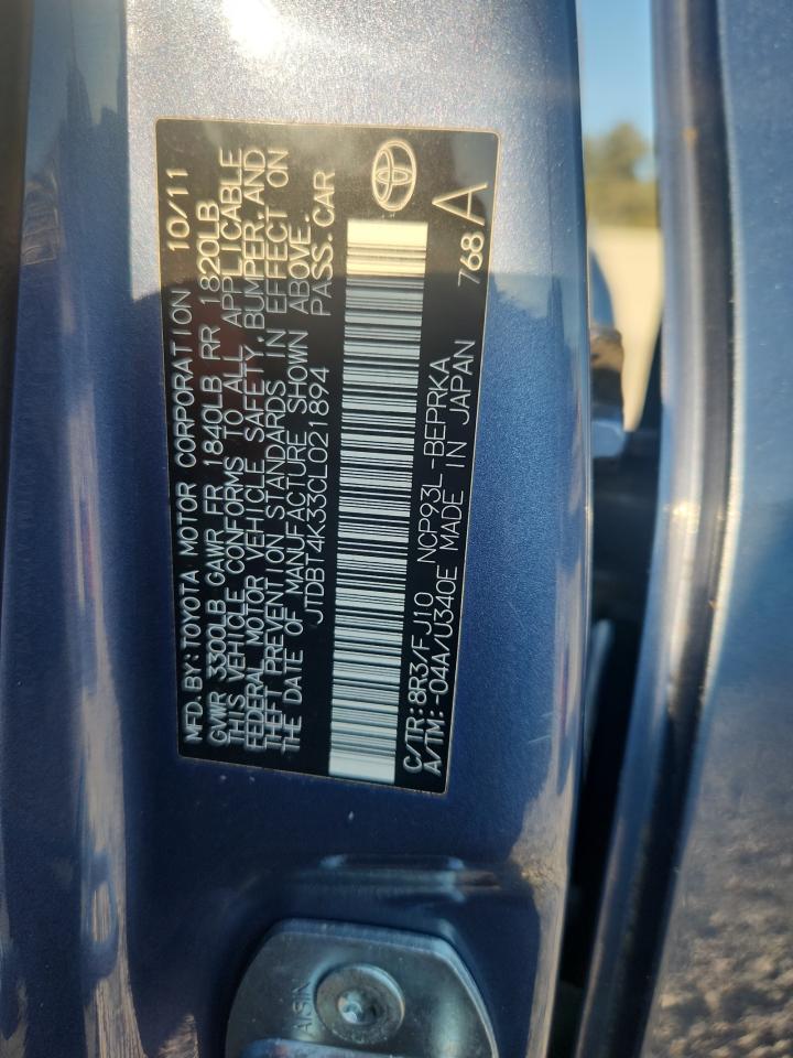 Колір СинійЦиліндри 4VIN JTDBT4K33CL021894Стан Заводиться та їде (перевірено)Ушкодження Передня або задня