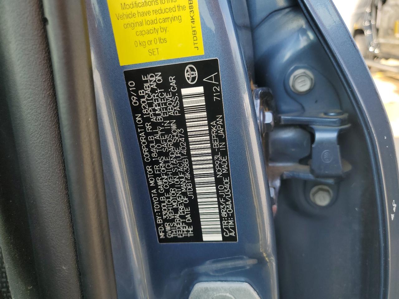 Колір СинійЦиліндри 4VIN JTDBT4K38B1402473Стан Заводиться та їде (перевірено)Ушкодження З боківДата аукціона 2025-10-09