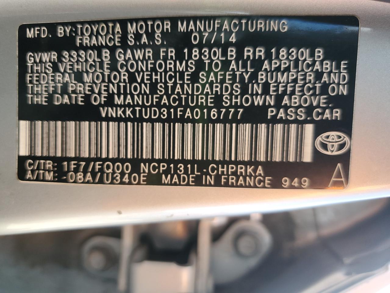 2015 TOYOTA YARIS - VNKKTUD31FA016777, колір - Срібний, 1.5, Бензин, із США