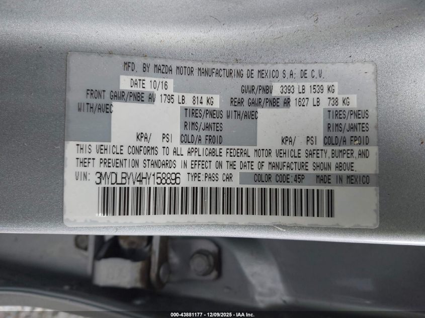 Колір СрібнийЦиліндри 4Привід Передній привідVIN 3MYDLBYV4HY158896Стан Заводиться та їде (перевірено)Ушкодження Передня або задня