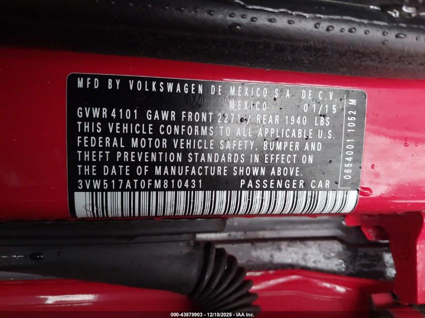 2015 VOLKSWAGEN BEETLE - 3VW517AT0FM810431, колір - Червоний, 1.8, Бензин, Передній привід із США