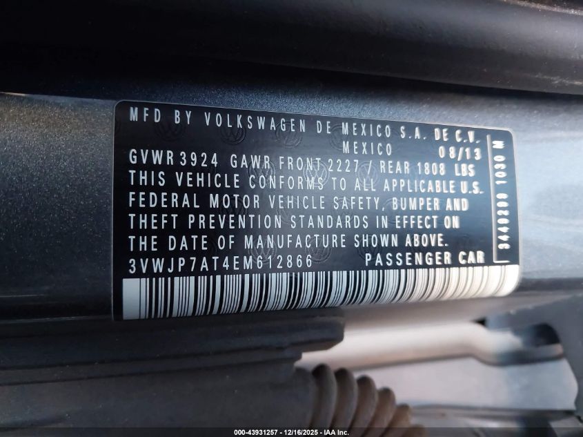2014 VOLKSWAGEN BEETLE - 3VWJP7AT4EM612866, колір - , 2.5, Бензин, Передній привід із США