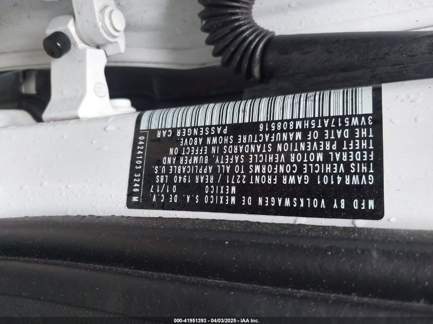 2017 VOLKSWAGEN BEETLE - 3VW517AT5HM808516, колір - Білий, 1.8, Бензин, Передній привід із США