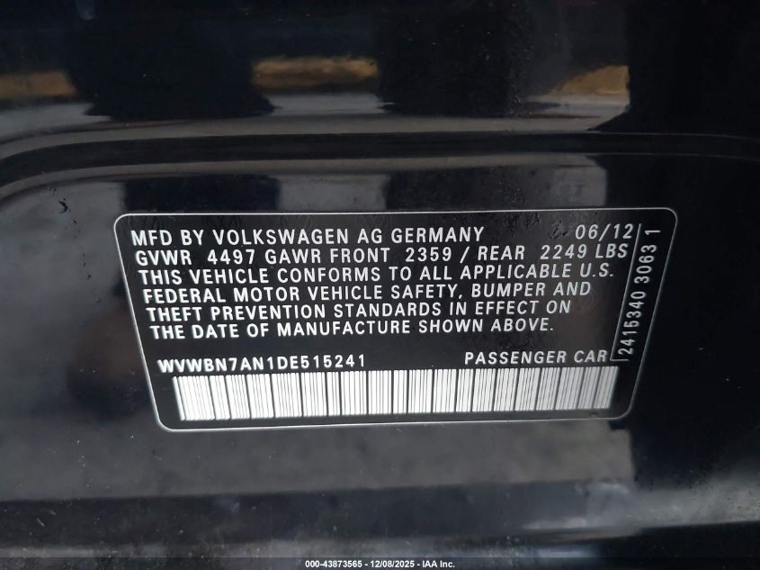 2013 VOLKSWAGEN CC - WVWBN7AN1DE515241, колір - Чорний, 2.0, Бензин, Передній привід із США