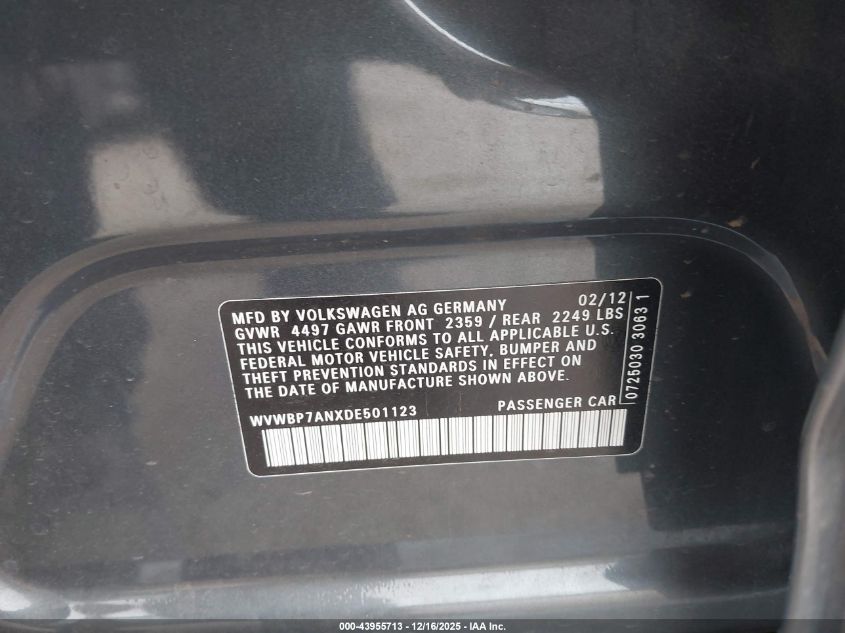 2013 VOLKSWAGEN CC - WVWBP7ANXDE501123, колір - Сірий, 2.0, Бензин, Передній привід із США