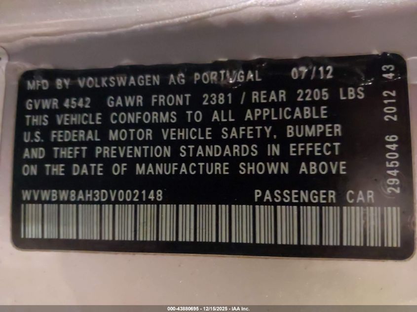 2013 VOLKSWAGEN EOS - WVWBW8AH3DV002148, колір - Срібний, 2.0, Бензин, Передній привід із США