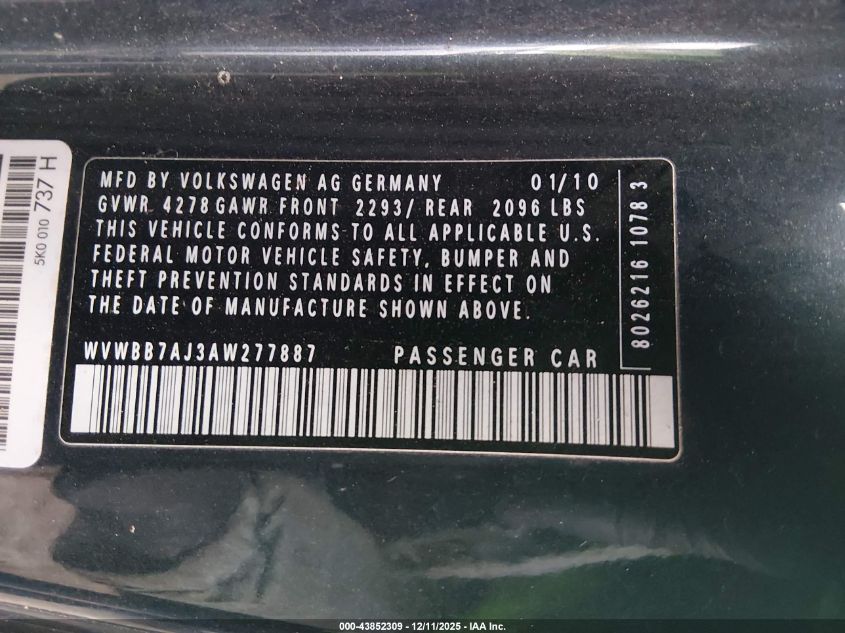 2010 VOLKSWAGEN GOLF - WVWBB7AJ3AW277887, колір - Синій, 2.5, Бензин, Передній привід із США