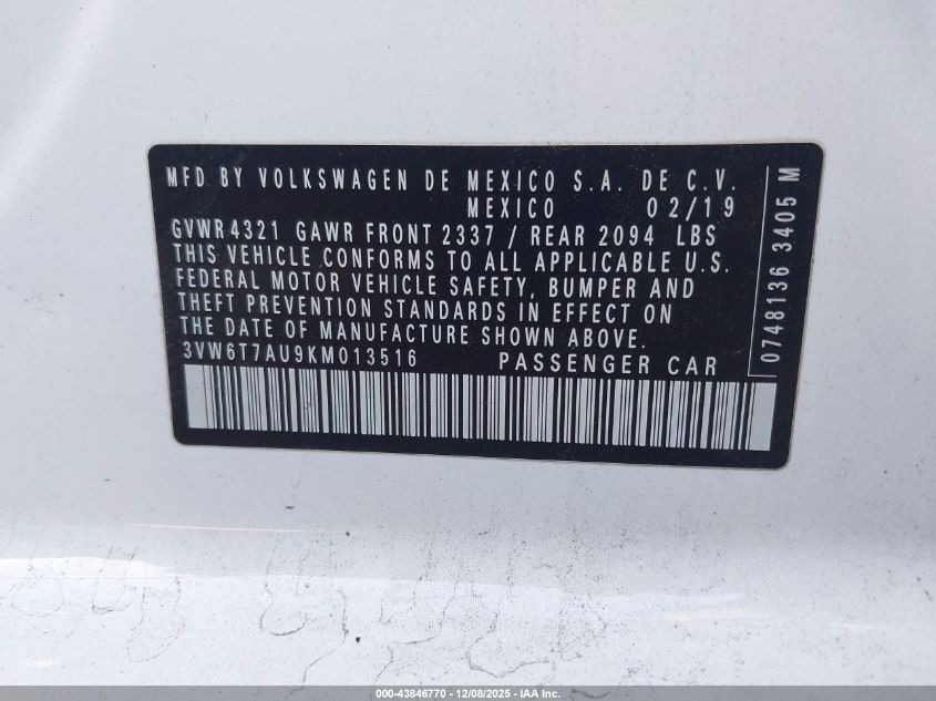 2019 VOLKSWAGEN GOLF GTI - 3VW6T7AU9KM013516, колір - Білий, 2.0, Бензин, Передній привід із США