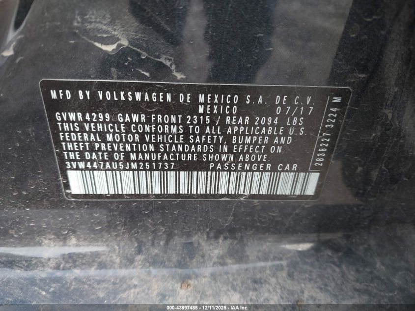 2018 VOLKSWAGEN GOLF GTI - 3VW447AU5JM251737, колір - Сірий, 2.0, Бензин, Передній привід із США