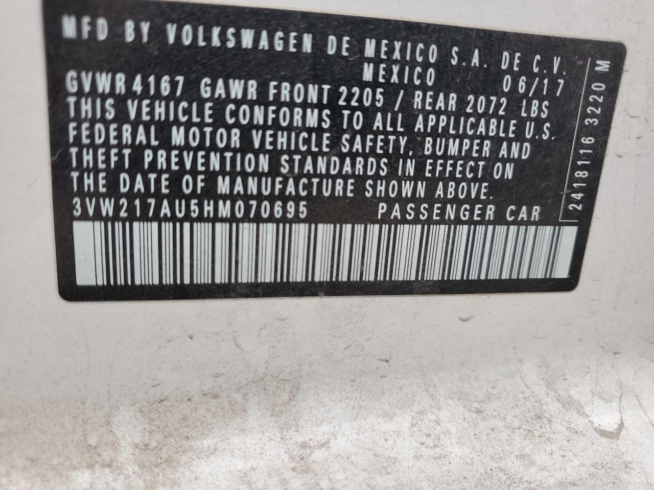 Колір БілийЦиліндри 4VIN 3VW217AU5HM070695Стан Заводиться та їде (перевірено)Ушкодження З боківДата аукціона 2025-12-23