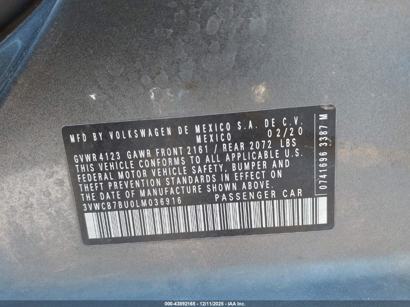 2020 VOLKSWAGEN JETTA - 3VWCB7BU0LM036916, колір - Сірий, 1.4, Бензин, Передній привід із США