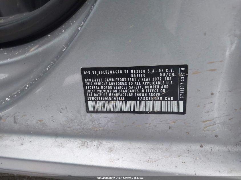 2020 VOLKSWAGEN JETTA - 3VWC57BU0LM102355, колір - Срібний, 1.4, Бензин, Передній привід із США