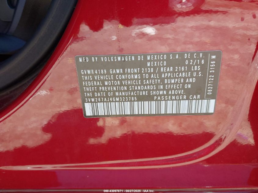 2016 VOLKSWAGEN JETTA - 3VW267AJ4GM323785, колір - Червоний, 1.4, Бензин, Передній привід із США