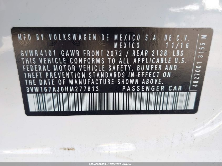 2017 VOLKSWAGEN JETTA - 3VW167AJ0HM277613, колір - Білий, 1.4, Бензин, Передній привід із США