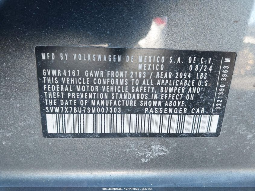2025 VOLKSWAGEN JETTA - 3VW7X7BU7SM007303, колір - Сірий, 1.5, Бензин, Передній привід із США
