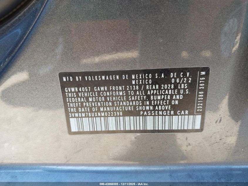 2022 VOLKSWAGEN JETTA S