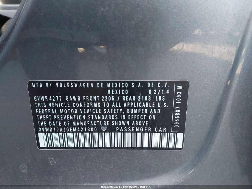 2014 VOLKSWAGEN JETTA - 3VWD17AJ0EM421300, колір - Сірий, 1.8, Бензин, Передній привід із США
