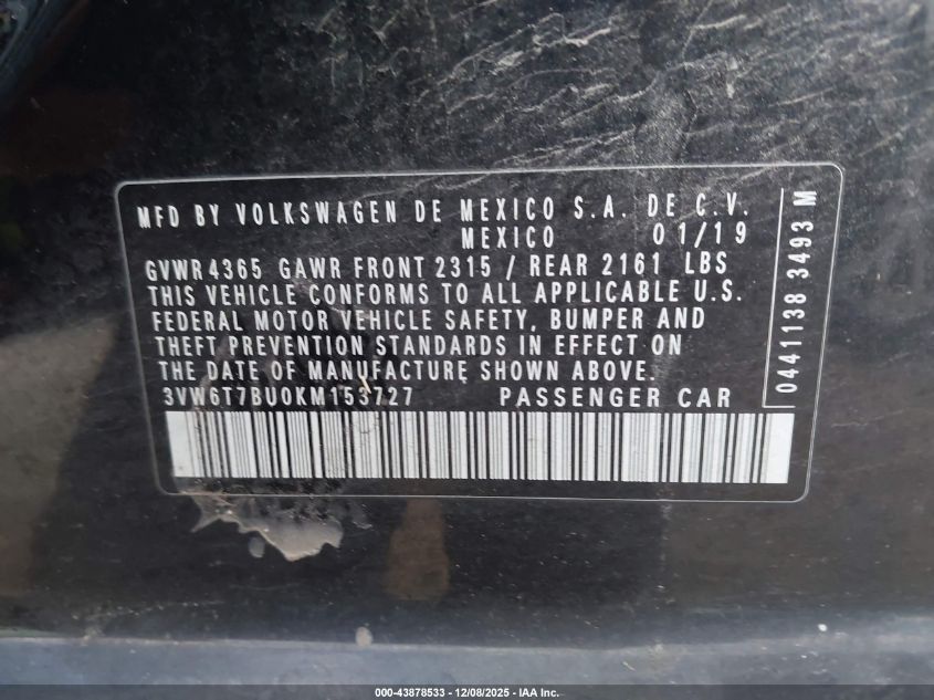2019 VOLKSWAGEN JETTA S