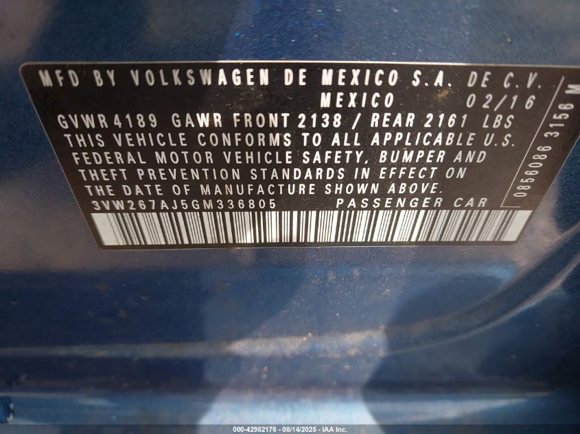 2016 VOLKSWAGEN JETTA - 3VW267AJ5GM336805, колір - Синій, 1.4, Бензин, Передній привід із США