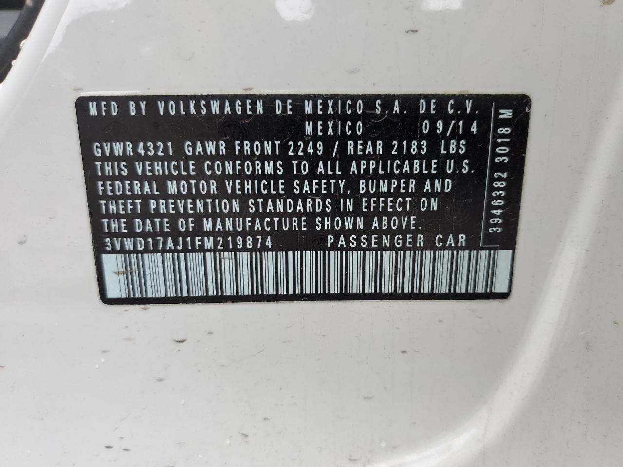 2015 VOLKSWAGEN JETTA - 3VWD17AJ1FM219874, колір - Білий, 1.8, Бензин, із США