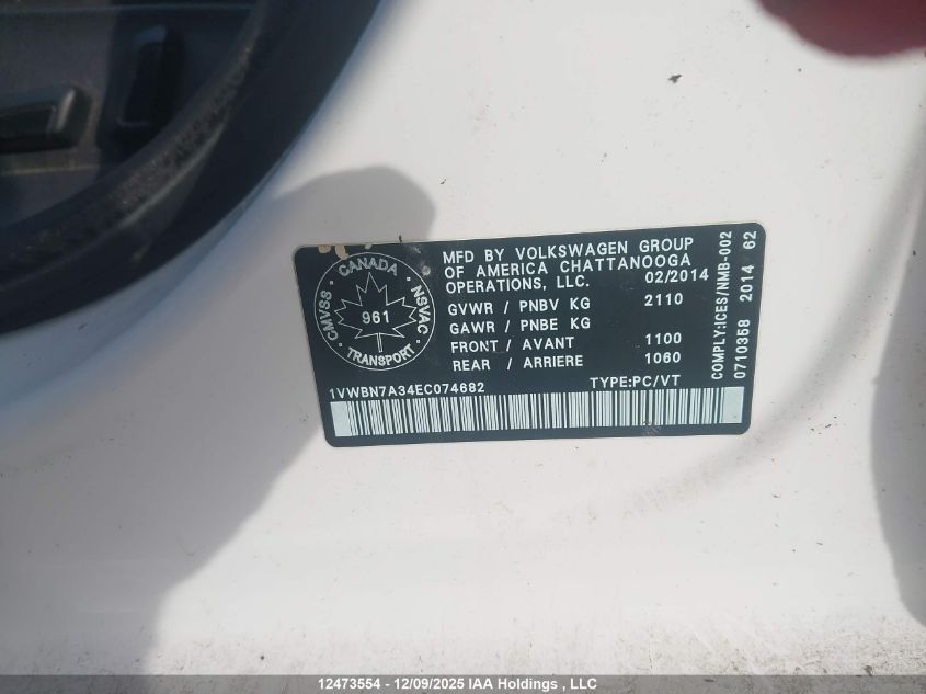 2014 VOLKSWAGEN PASSAT - 1VWBN7A34EC074682, колір - Білий, , Дизель, Передній привід із США